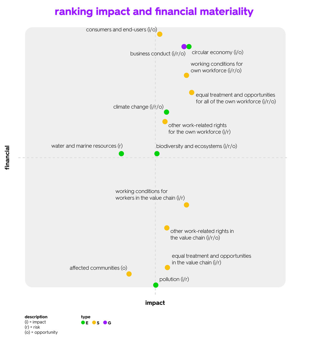 Preparing for reporting according to the CSRD ensured that we further sharpened our sustainability strategy. In our connectivity matrix, we have made this visible. Despite developments in 2025 changing this CSRD guideline, HEMA continues to implement our sustainability strategy. Indeed, with the double materiality analysis, we identified which issues are important to us and to our value chain. And we want to work on that.